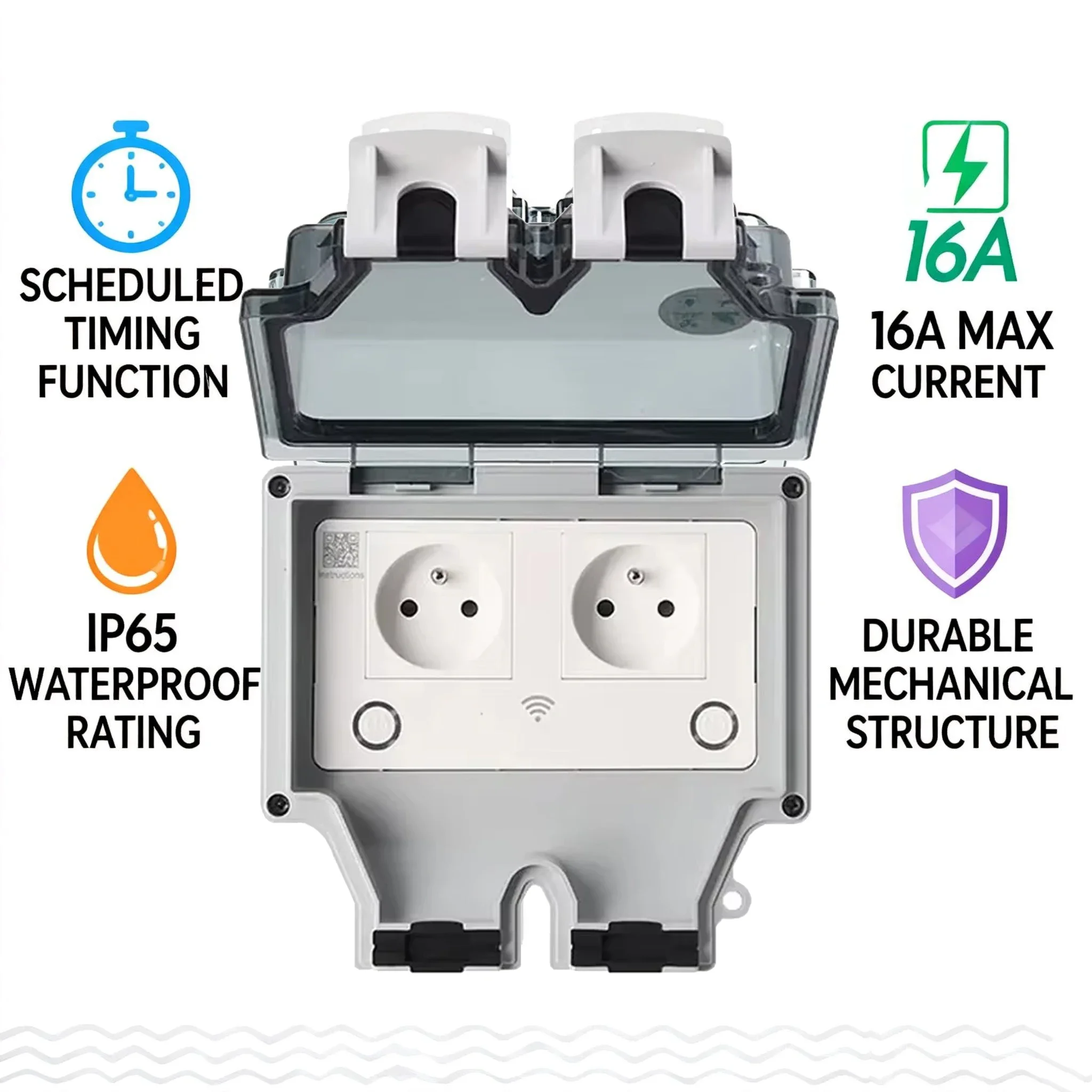 Equipped with two independent WIIF switch buttons, which can manually control each individual socket or switch separately for individual sockets in the APP