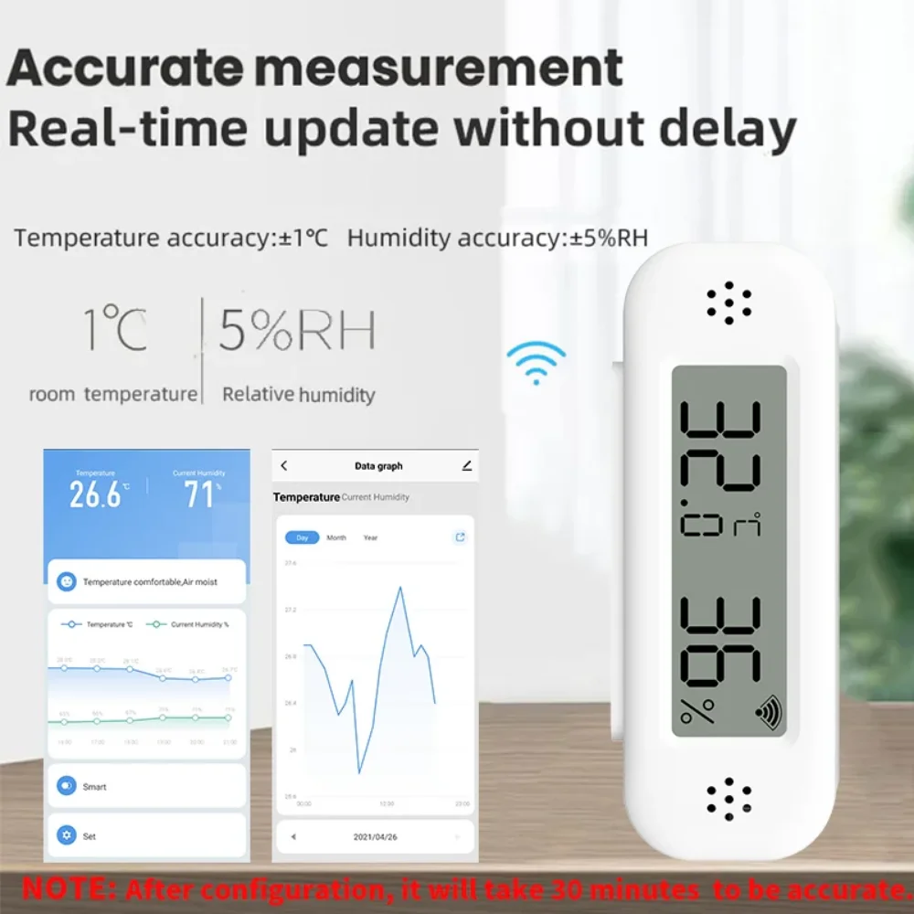 When the sensor is registered to the APP and connected to the Internet, you can monitor the temperature and humidity of the room in real time anywhere in the world.