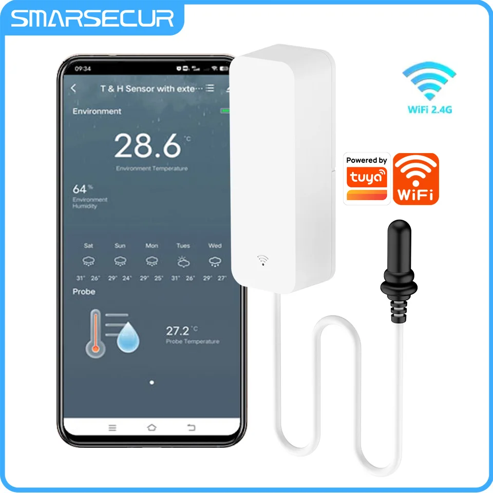 Tuya WiFi Temperature Humidity Sensor With External Probe for Smart Home Hygrometer APP Monitoring For Plants Aquarium Winery