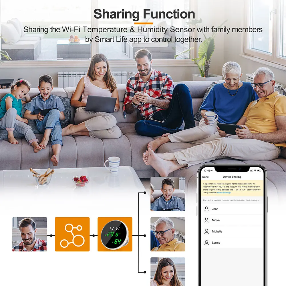 You can share your added devices with your family members, so they can also monitor the ambient environment.