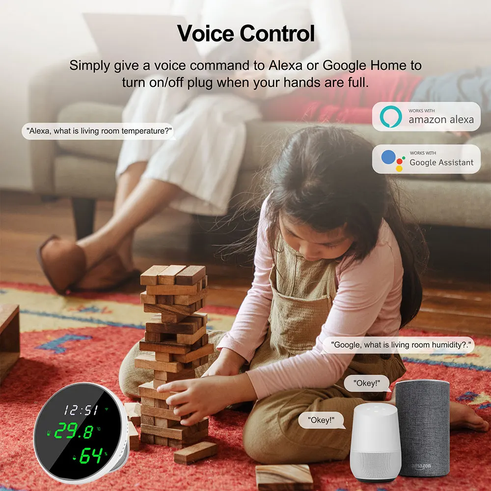 This sensor supports Amazon Alexa and Google Home Assistant. You can hear the current temperature and humidity by voice.