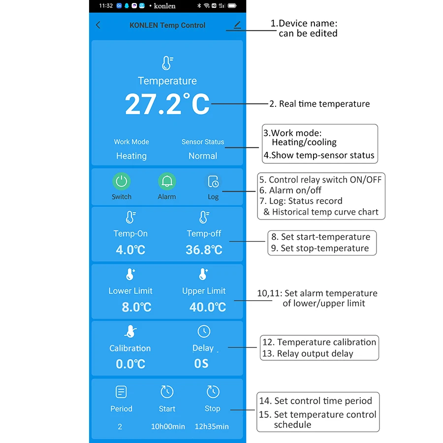KONLEN Tuya Wifi Temperature Sensor 3m Probe Wire Digital Thermometer Smart Life Home Water Pool Freezer Thermostat Remote Alarm