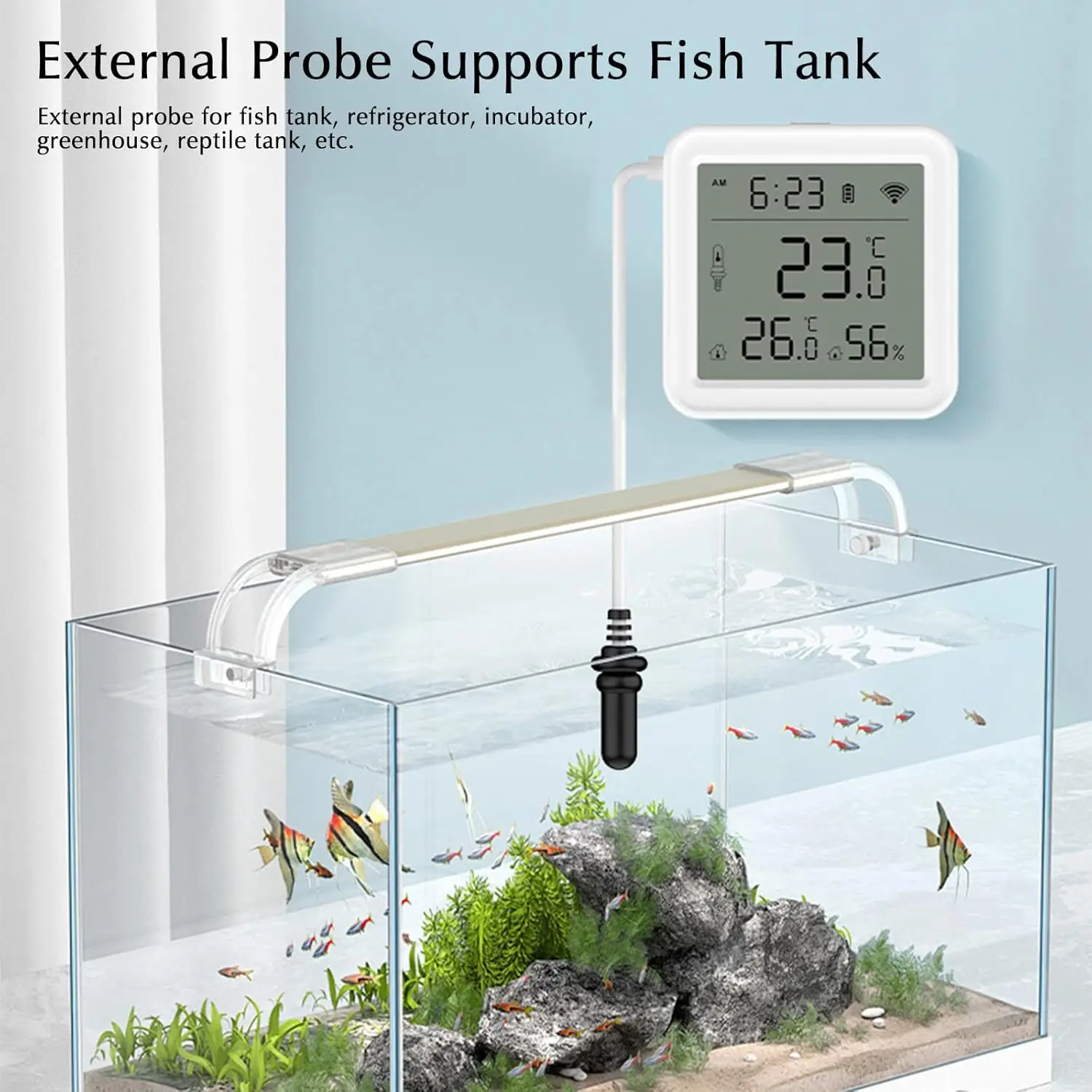 Tuya WiFi Zigbee Temperature Humidity Meter with External Probe Sensor Digital LCD Screen Thermometer for Fish Tank Freezer