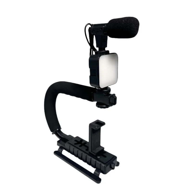 U C Shaped Holder Grip Video Handheld Stabilizer with Fill light,Phone Holder,Mic,Bluetooth Remote Control for SLR Cameras Home DV Came