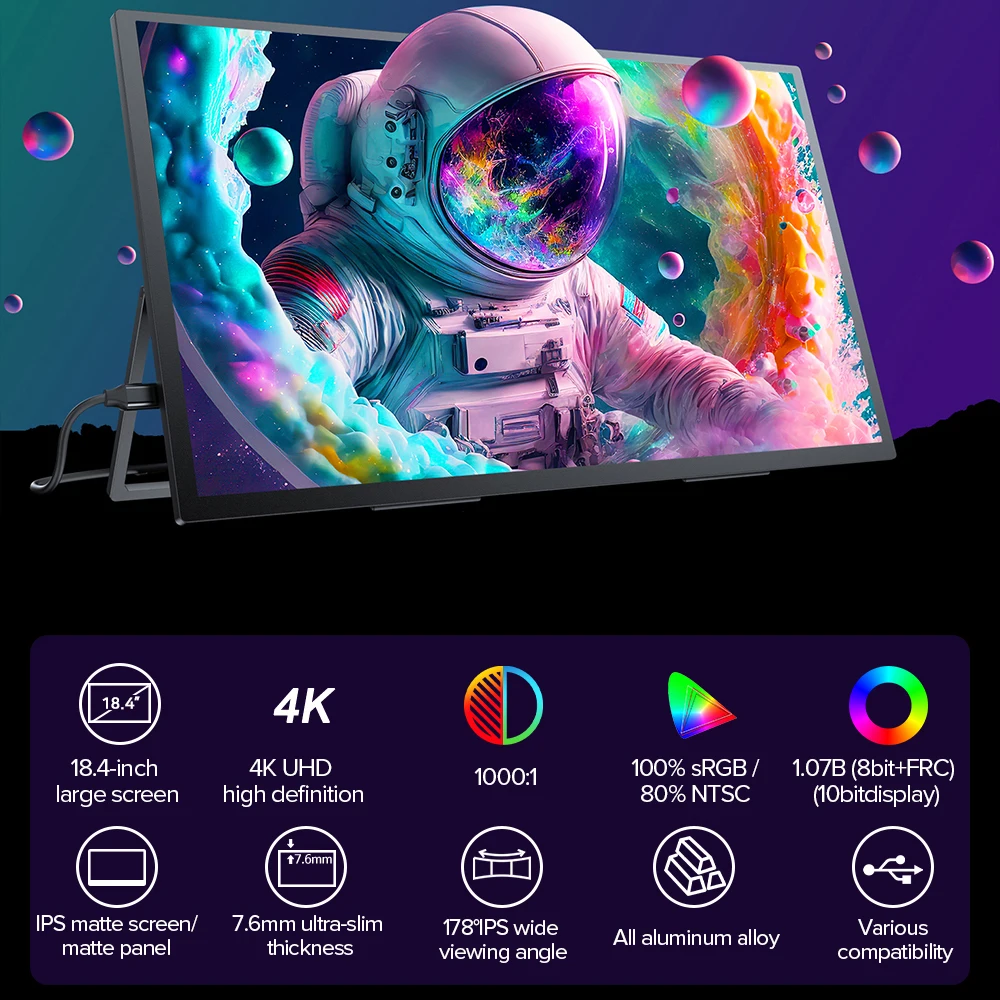 UPERFECT 18.4 Inch 4K UHD Portable Gaming Monitor HDR 3MS FreeSync IPS HDR Computer Display Bulit in Dual Speakers VESA OSD Menu