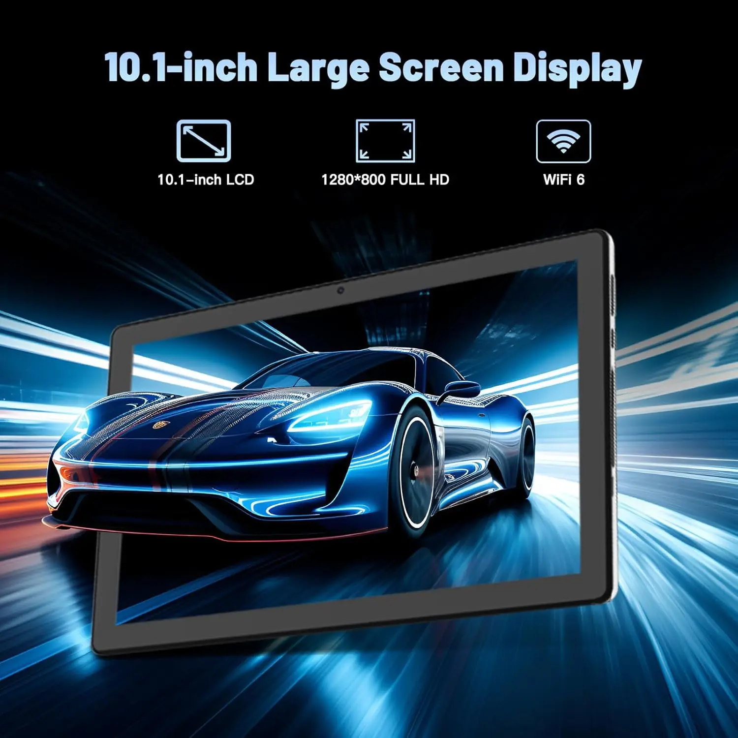 BAKEN 10-inch tablet with SIM card slot, Android 15, Wi-Fi, GPS, Bluetooth, 64GB storage, dual speakers, USB-C port