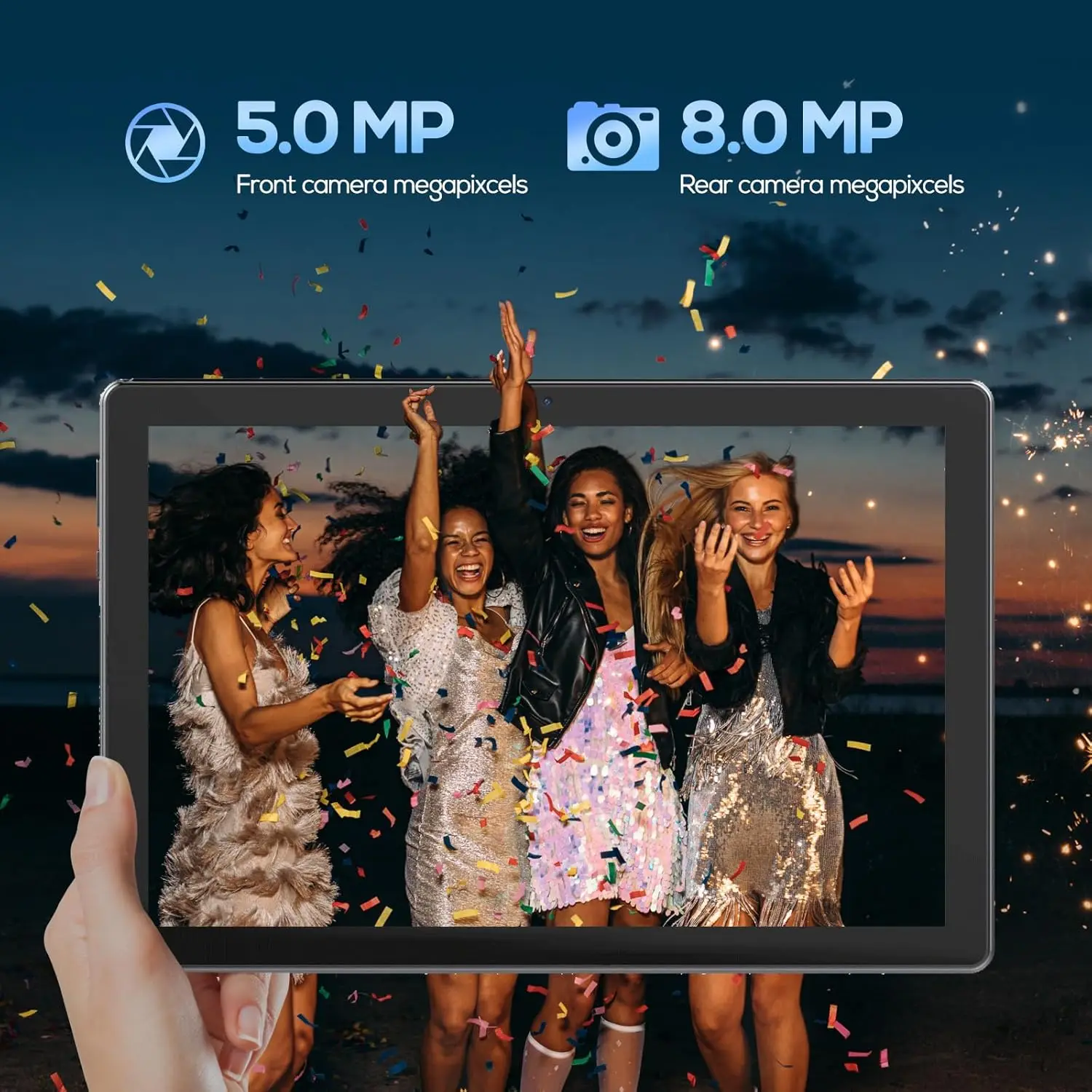 👁️【HD Display with Eyes Protection】URAO tablet equipped with a high resolution 1280*800 IPS display, which shows a brightly colored wide-screen for a more realistic viewing experience with sharper and brighter images. Comes with a 3-layer screen protector which prevent screen scratches. The front 5MP and rear 8MP cameras can easily satisfy video calls, online learning, etc. The 10 inch tablet LCD designed with low blue light technology, the screen flicker and the damage to the eyes caused by irritating blue light will be reduced, and you can have a good time safer and with more comfort.