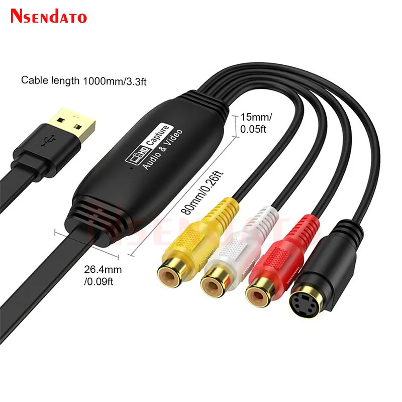 Analog Video Recorder AV Capture VHS To Digital Converter Video Tapes Transfers to Digital Format to USB for Hi8,DVD,VCR,DVR