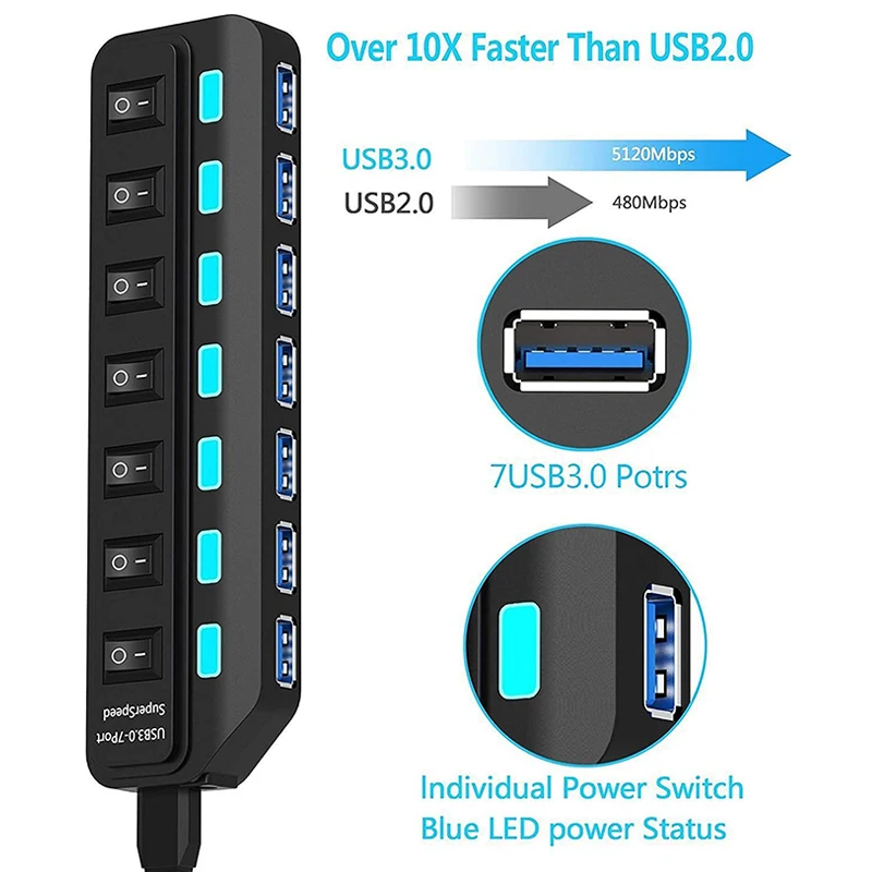 3) 7 port USB interface support hot-swappable, plug and play, easy to use