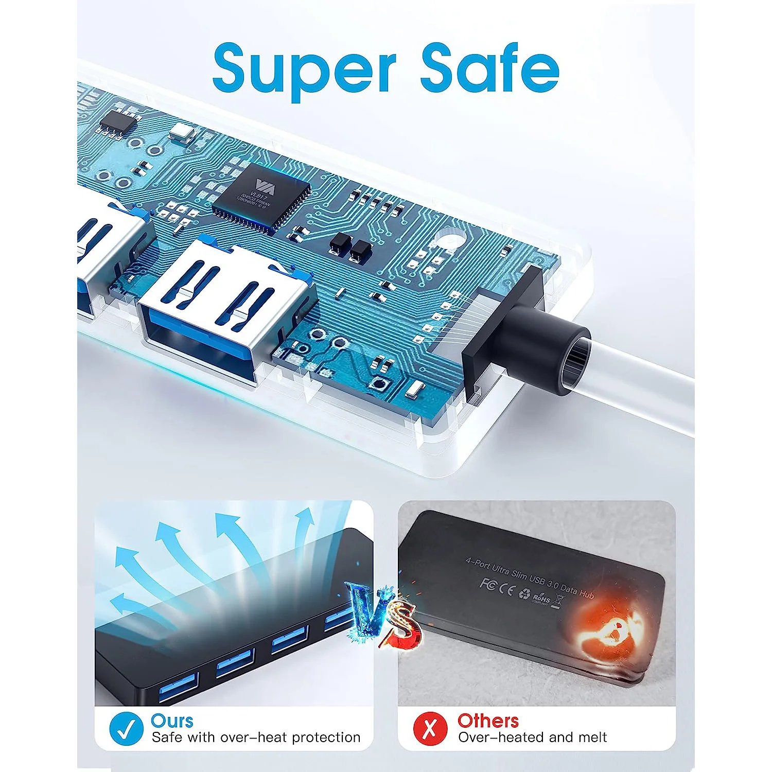 Ultra Slim & Portable: USB splitter is compact and lightweight. Perfect for on-the-go use! You can easily put it into your pocket easily, ideal for office, travel and school