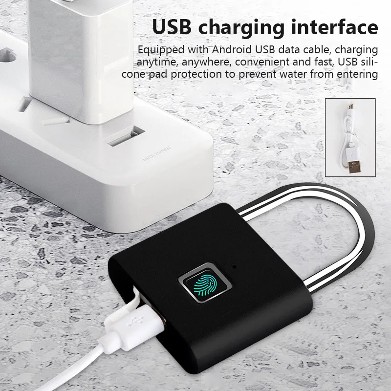 USB Rechargeable Fingerprint Smart Padlock Keyless Door Lock Portable Fingerprint Lock for Bag Drawer Suitcase Gym School