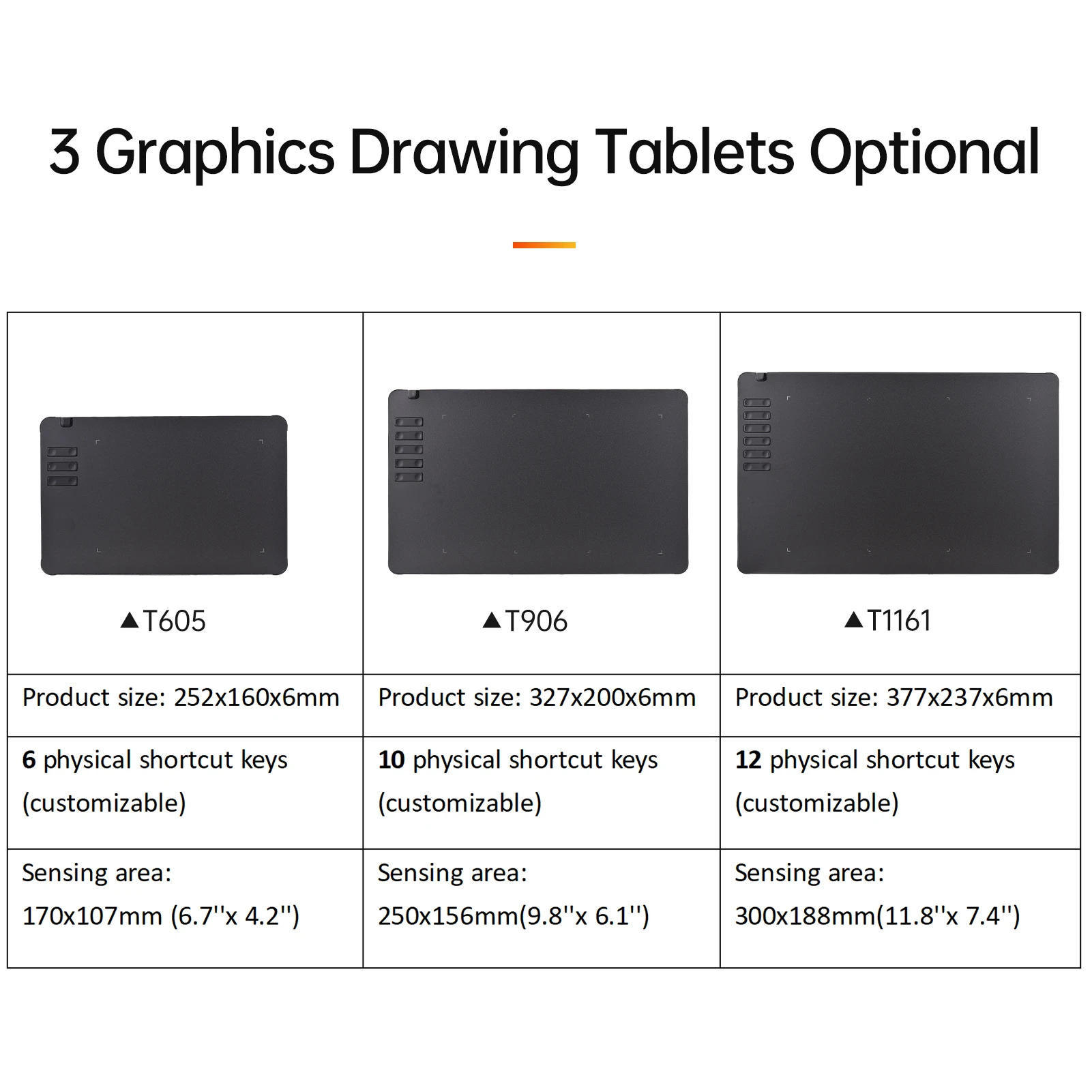 Sensing area: Â 250x156mm(9.8”x 6.1”)