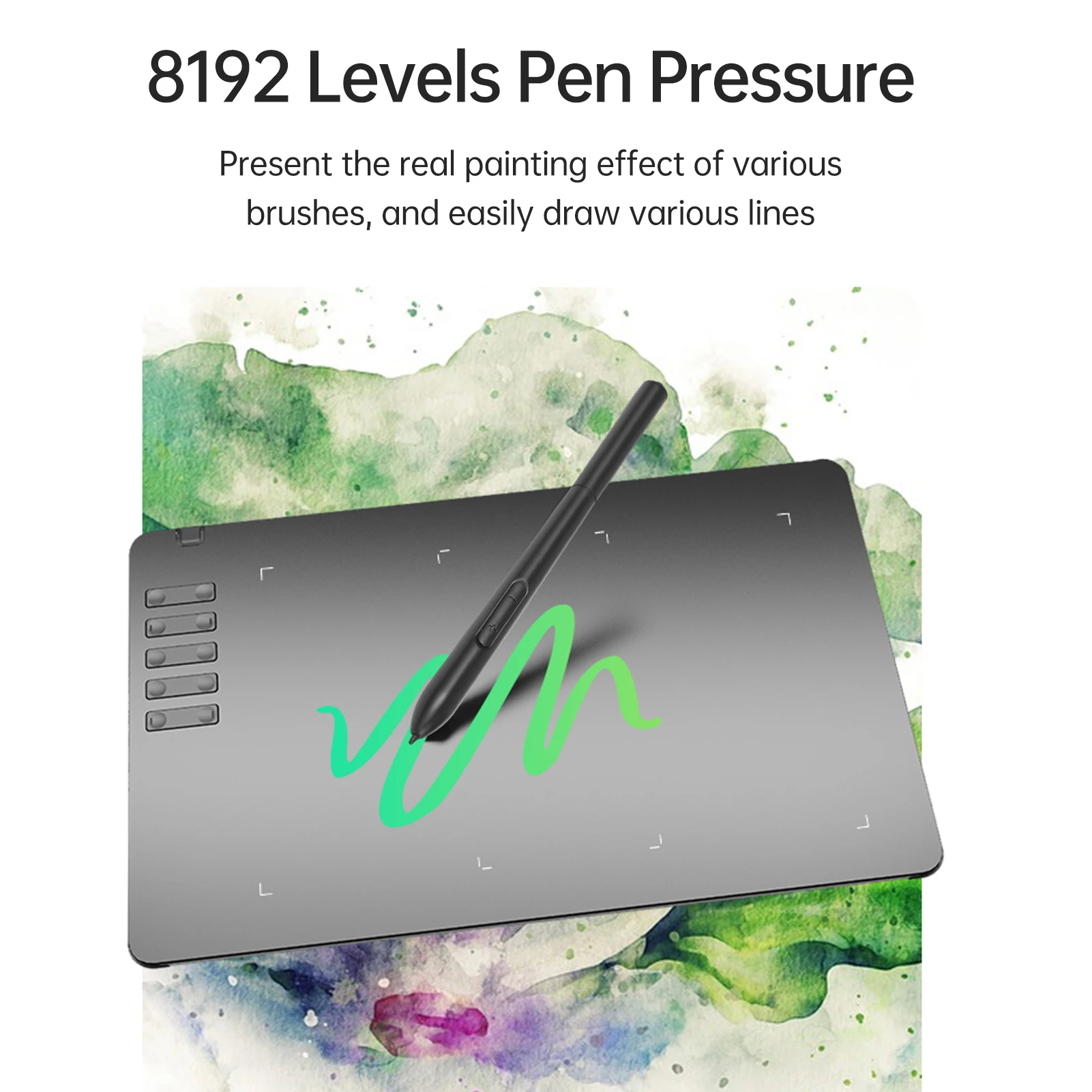 2. [16384 Levels Pen Pressure] The pen features 16384 levels of pressure sensitivity, helps you to draw thicker or thinner lines depending on how hard you push on the pen. It makes lines smoother and more natural, allowing you to capture ideas faster and easier.