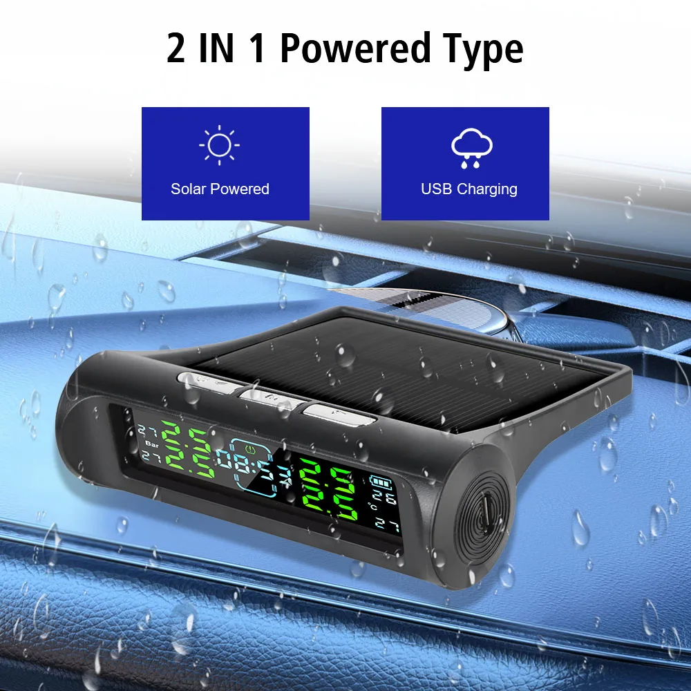 a) When the tire pressure exceeds the set safety range value or leakage, the corresponding tire position pressure value and alarm symbol flash on the display, while the buzzer sends a continuous bi.bi.bi sound prompt; Press any key to cancel the alarm tone, but the fault icon is still displayed.