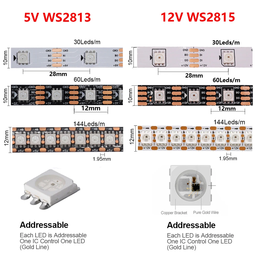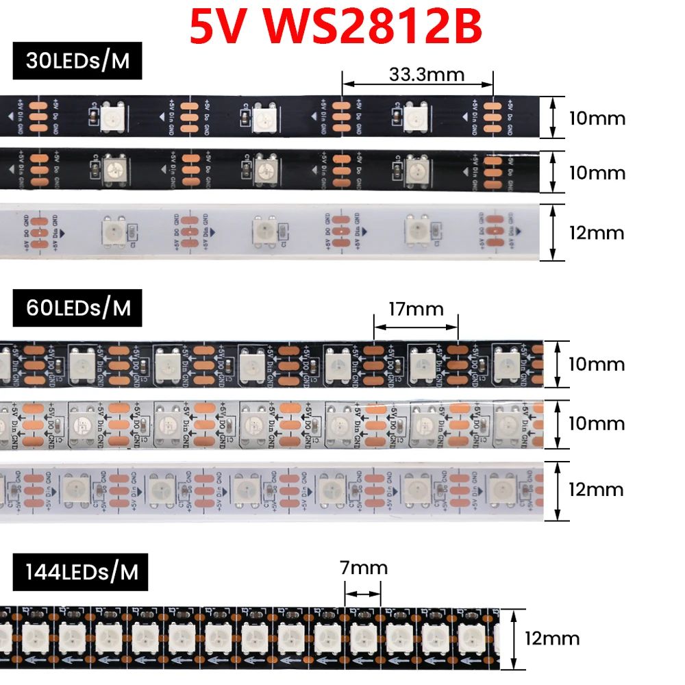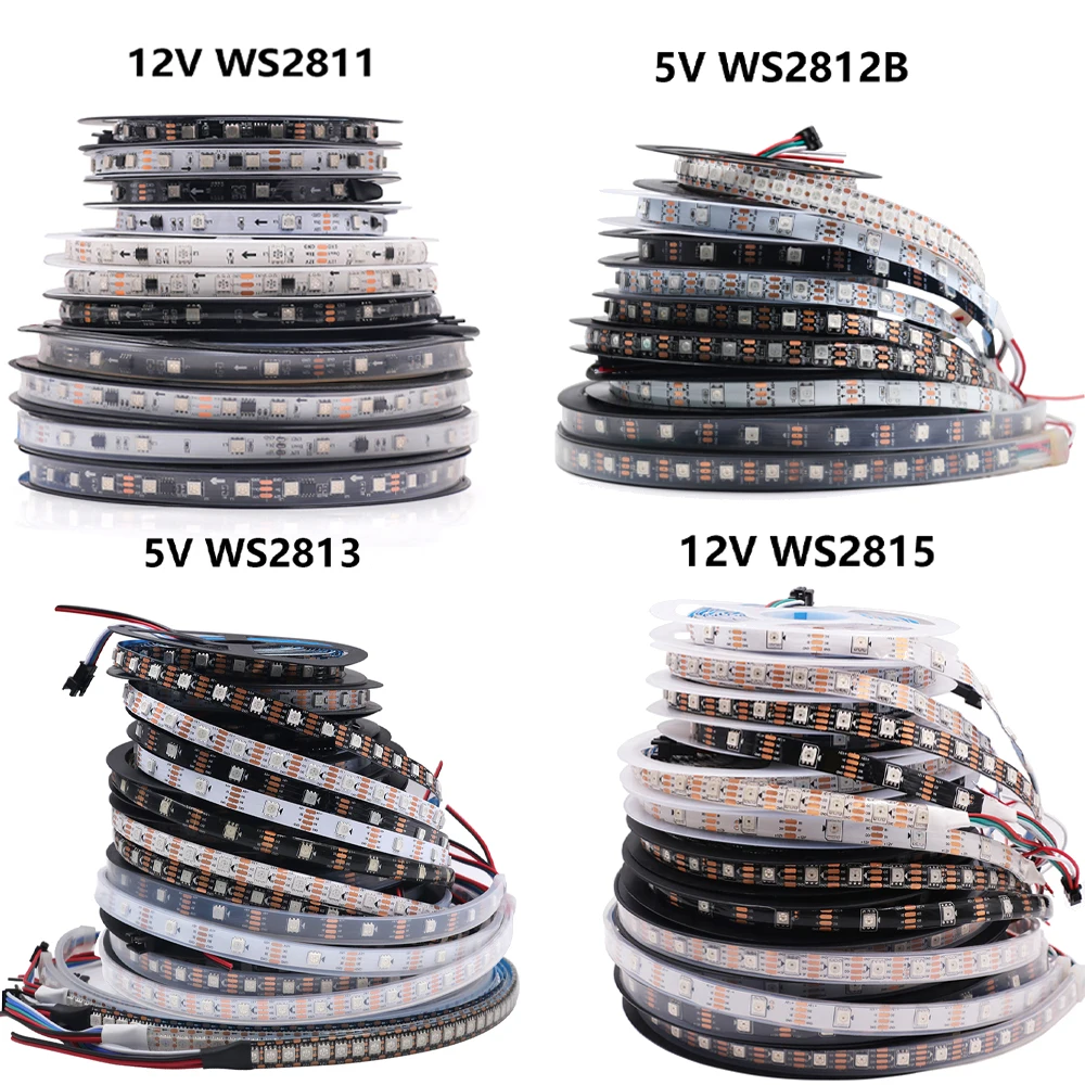 WS2812B WS2811 WS2813 WS2815 5050 RGB Smart LED Strip 5V 12V WS2812 Light Individually Addressable IC 30/60/144Pixels/Leds/m DC