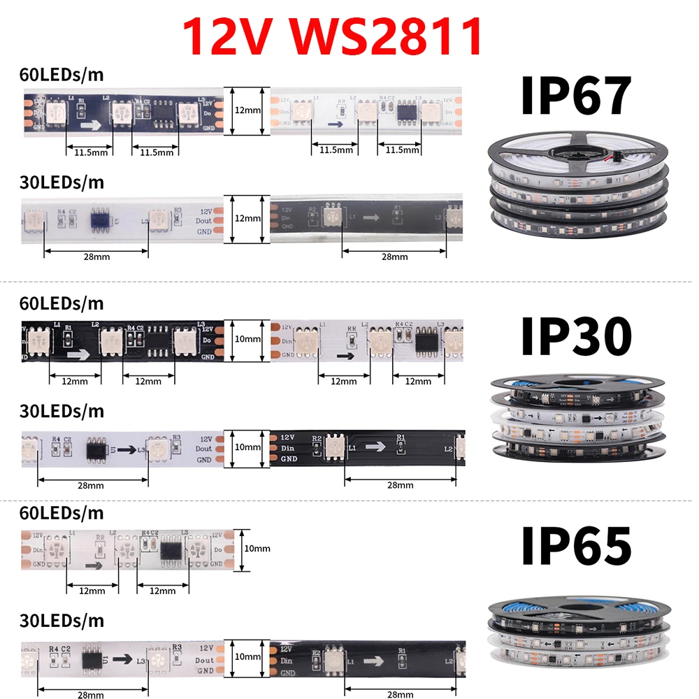 4.IP30, IP65 with tape on the back, IP67 without tape.