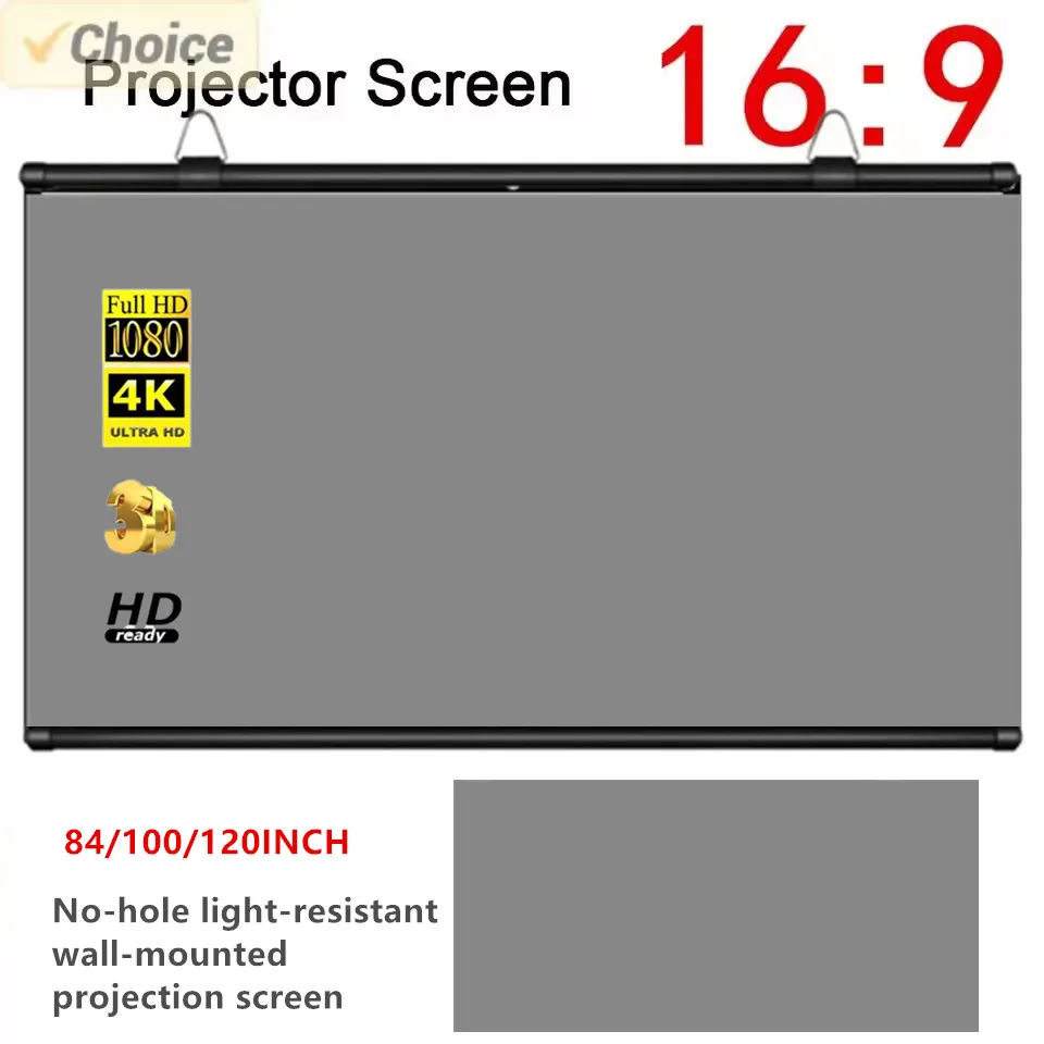 Xiaohui No-hole wall-mounted projection screen metal projection screen home projection screen 84 inches 100 inches 120 inches