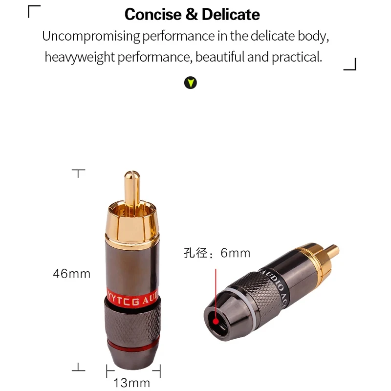 YYTCG-RCA audio connector, Gold plated connector, Lotus head video stand, 6mm cable, RCA male plug adapter 1/2/4 pieces