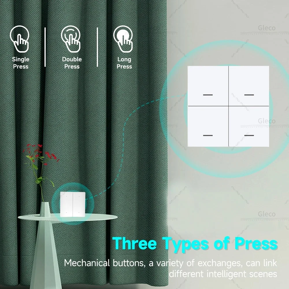 Includes 4 buttons, each supporting 3 scene modes (click, double-click, press). With 3 pairing modes per button, you can set up to 12 different scenes, such as Away, Home, and Sleep mode. Customize your smart lifestyle directly from the app.